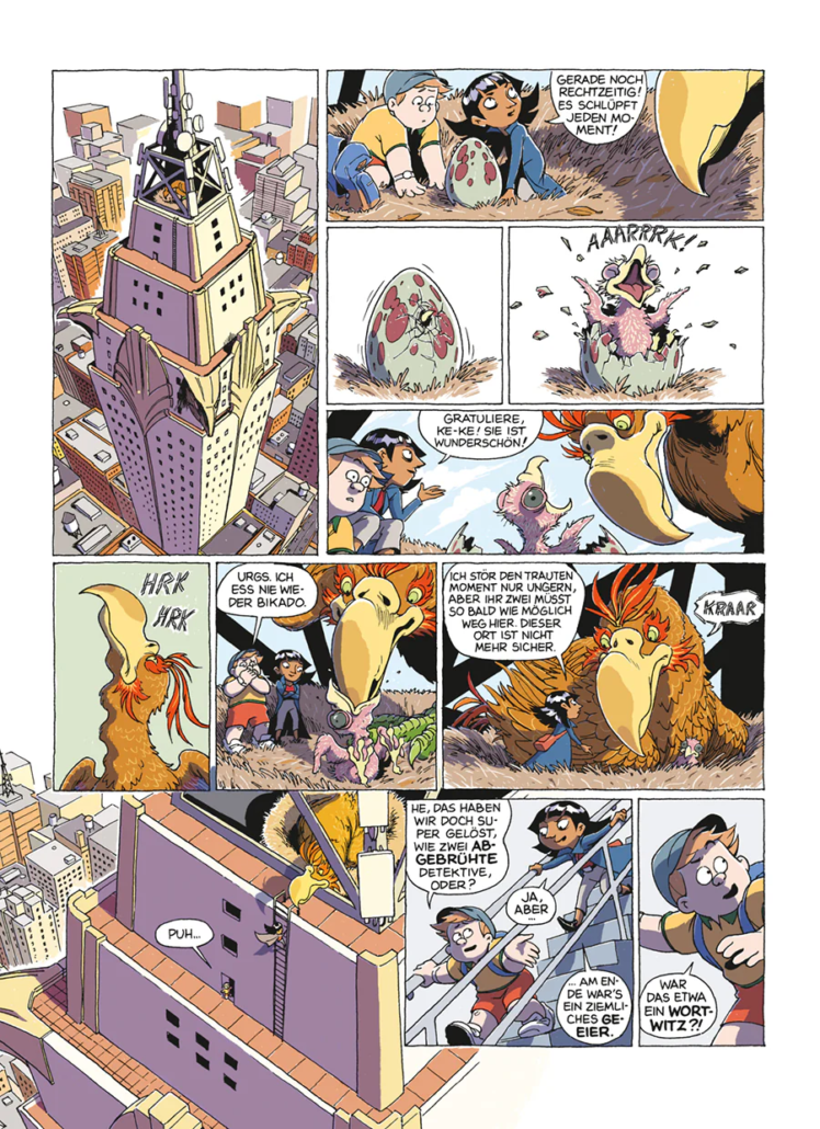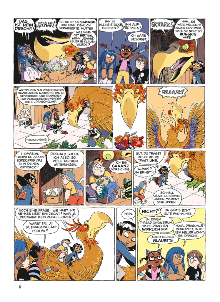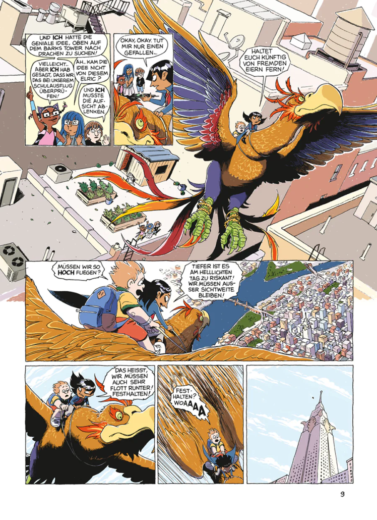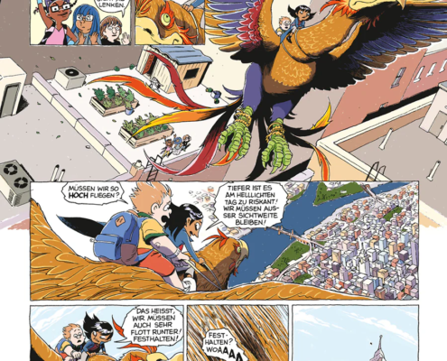 Im großformatigen Albenformat der deutschen Ausgabe wirken die Panels jedoch deutlich eindrucksvoller. Die Seiten bekommen mehr Raum zum Atmen und viele Szenen – besonders die unterirdischen Monsterorte – entfalten eine stärkere visuelle Wirkung. Gerade die größeren Bildflächen lassen Weings detailreiche Figurenmimik und die vielen kleinen Monsterdesigns noch besser zur Geltung kommen.