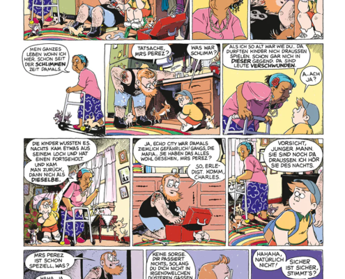 Auch ein Grund, warum diese Comics so gut funktionieren. Sie erzählen von einer Welt, die gleichzeitig vertraut und geheimnisvoll ist. Eine Welt, in der hinter jeder Tür eine Geschichte wartet.